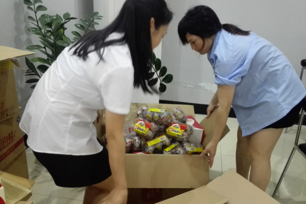 負責領取的前臺小周清點、簽名忙的不亦樂乎,這不,財務部的美女們熱心幫忙分發啦!