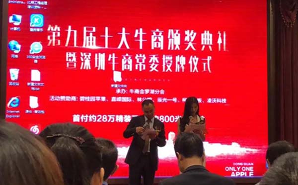 深圳市龍崗牛商會執(zhí)行會長,深圳市通發(fā)激光設(shè)備有限公司副董事長王小峰從深圳上千企業(yè)家中脫穎而出,同其他九位優(yōu)秀企業(yè)家共同獲得了第九屆深圳十大牛商的殊榮。