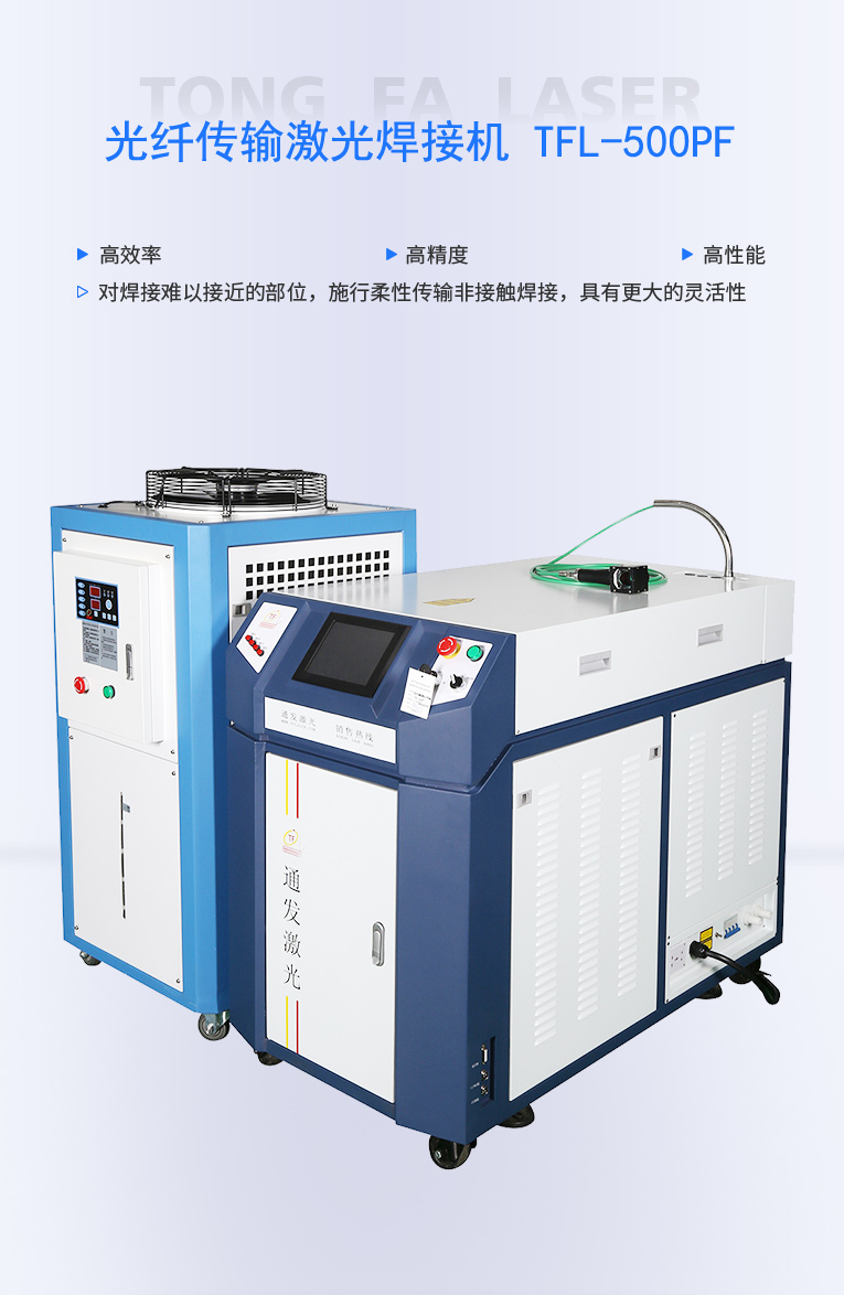 通發激光TFL-500PF光纖激光焊接機,激光功率大,經過光纖優化獲得卓越的光束質量,滿足1.5mm以內料厚,熔深1mm以內的廚衛,家電,高速不銹鋼激光焊接加工。