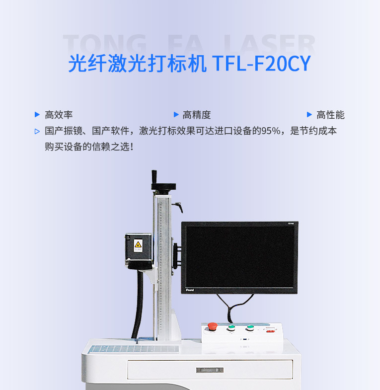 通發(fā)激光研發(fā)TFL-F20CY激光打標(biāo)機(jī),金屬材料和塑膠材料都進(jìn)行打標(biāo)加工,本激光鐳雕機(jī)配置成熟的20W和30W國(guó)產(chǎn)光纖激光器,國(guó)產(chǎn)振鏡、國(guó)產(chǎn)軟件,性價(jià)比高,激光打標(biāo)效果可達(dá)進(jìn)口設(shè)備的95%,是節(jié)約成本購(gòu)買設(shè)備的信賴之選!